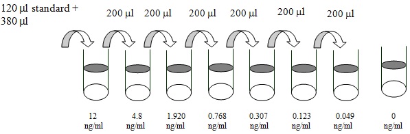 Distilled or deionized water Precision pipettes to deliver 2 µl to 1 µl volumes Adjustable 1-25 µl pipettes for reagent preparation 100 µl and 1 liter graduated cylinders Tubes to prepare standard and sample dilutions Absorbent paper Microplate reader capable of measuring absorbance at 450nm Log-log graph paper or computer and software for ELISA data analysis Protocol Outline