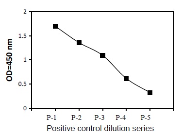 JURKAT cells were treated with Pervanadate at 37°C for 10 min. Solubilize cells at 4 x 107 cells/ml in lysis buffer. Serial dilutions of lysates were analyzed in this ELISA. Please see step 3 of Part VI Reagent Preparation for detail.