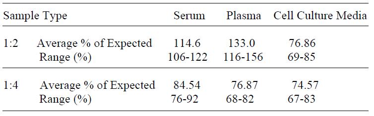 | Recommended Dilution (Serum/Plasma) | 3 - 30 fold |